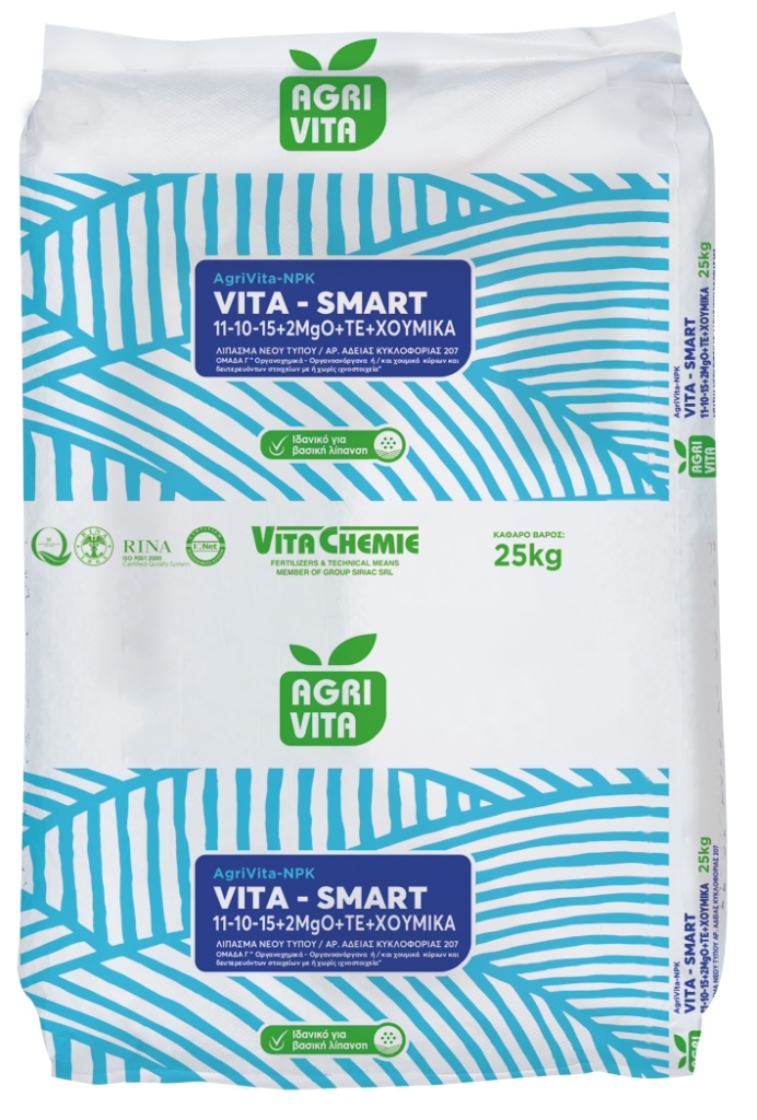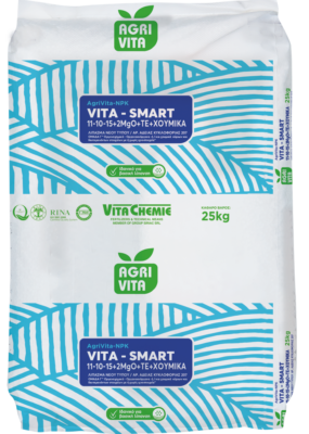 The fertilizer type VITA SMART 11-10-15+2MgO+TE of AGRIVITA-NPK series is a complex fertilizer containing all three macroelements and trace elements that are often considered essential for plant growth. It can be used as a basic fertilizer for winter crops (e.g. oilseed rape) and also for spring crops such as cotton.